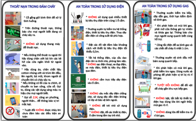 Mỗi hộ gia đình cần xây dựng phương án thoát nạn phù hợp, đặc biệt đối với người già, trẻ nhỏ. Ngoài cửa chính, cần tính toán các lối thoát khác như ban công, sân thượng. Không lắp lồng sắt, lưới sắt cố định tại ban công, cửa sổ nhà cao tầng; trường hợp đã lắp phải có cửa thoát hiểm, chìa khóa để nơi dễ thấy, dễ lấy và tất cả các thành viên đều biết. Chuẩn bị thang, thang dây và dụng cụ phá dỡ để sử dụng khi cần thiết.